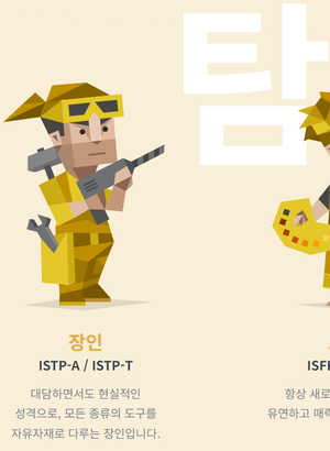 - 장인(ISTP-A / ISTP-T): 손재주가 뛰어나고, 문제를 해결하는 데 유연한 접근 방식을 가진 실용적인 탐험가입니다.
