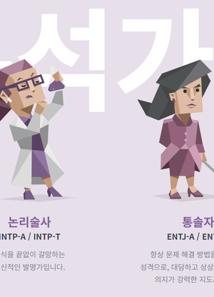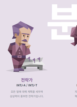 - 전략가(INTJ-A / INTJ-T): 모든 일에 대해 계획을 세우며 상상력이 풍부한 전략가입니다.