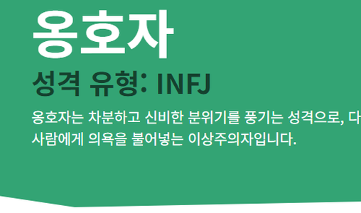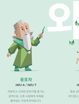 - 옹호자(INFJ-A / INFJ-T): 창의적이고 따뜻한 마음으로 사람들을 돕는 열정적인 조언자입니다.