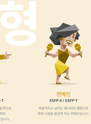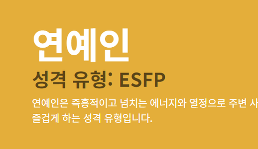 - 연예인(ESFP-A / ESFP-T): 주위 사람들에게 긍정적인 에너지를 주고 활기찬 분위기를 조성하는 연예인 같은 성격입니다.