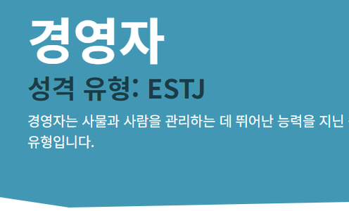 - 통솔자(ENTJ-A / ENTJ-T): 사업 목표를 달성하기 위해 냉철하고 결단력 있는 리더십을 가진 유형입니다.