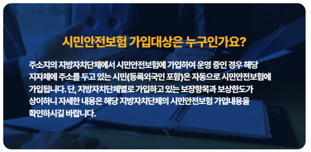 네, 주민등록상 해당 지역에 주소가 등록되어 있는 시민이라면 별도의 절차 없이 자동으로 가입됩니다. 이 보험은 주민의 안전을 지키기 위한 기본적인 권리로 제공되는 것이기 때문에, 누구나 쉽게 혜택을 받을 수 있습니다.