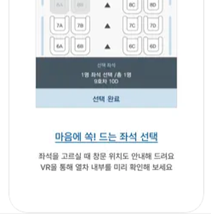 - 열차 좌석 선택 기능: 창가, 복도 자리 등 원하는 좌석 선택 가능.