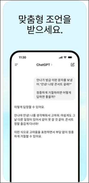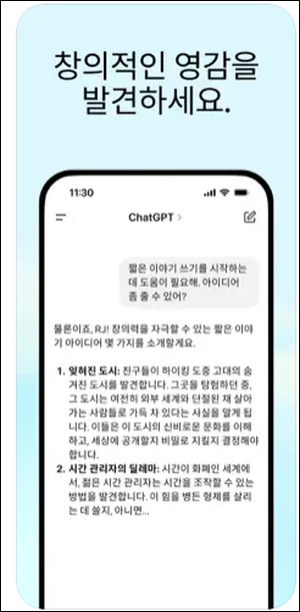 앱 설치 후 로그인하면, 웹과 동일한 방식으로 챗 gpt 무료사용이 가능합니다. 이동 중에도 편리하게 AI의 도움을 받을 수 있다는 점에서 유용성이 높습니다.