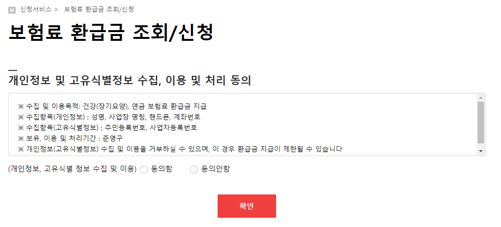 - '보험료 환급금 조회/신청' 메뉴를 클릭합니다.