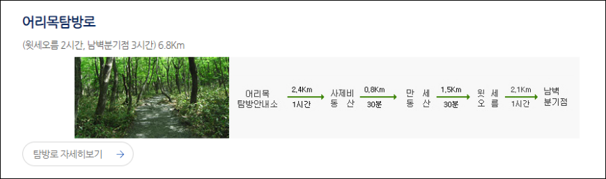 | 구분 | 탐방로 | 탐방료 (10,11,12,1,2,3월) | 탐방료 (4,5,6,7,8,9월) |
